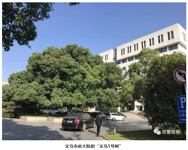 在義烏的市府大院有一棵“義烏1號樹”,代表了義烏市的城市精神風貌,象征著義烏人勤耕好學、剛正勇為、誠信包容的義烏精神。