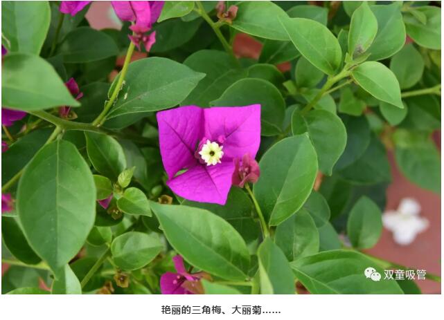 瞧!紅的像火的石竹花、白的像雪的繡球花、艷麗的大麗菊、喜慶的燈籠花……一叢叢一簇簇的花朵蔓延開來,像是在枝頭起舞,四處洋溢著濃濃的春意!