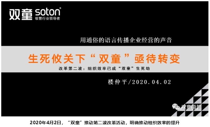 除此之外,在2020年4月2日,“雙童”也借勢展開了企業(yè)第二波改革活動,明確提升組織效率和推行“以顧客為本,以奮斗者為本”。