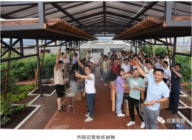 另一邊,食材采摘小組正在菜園里忙碌著,黃瓜、茄子、辣椒、生菜……各種蔬菜全都就地取材,現(xiàn)摘現(xiàn)吃,新鮮又放心。