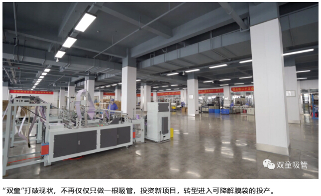 但通過“雙童”團隊一致的努力,“雙童”購置的新設備陸續(xù)到位,新項目也開始投產(chǎn),目前,“雙童”除了能生產(chǎn)各類吸管之外,還能生產(chǎn)可降解保鮮袋、垃圾袋等新產(chǎn)品。