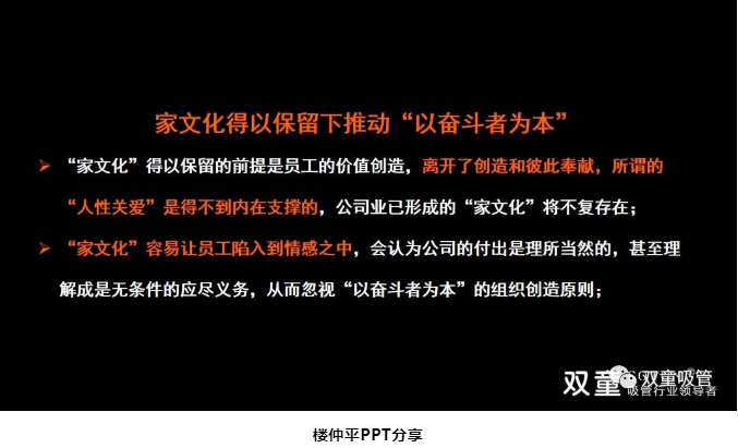 因此,樓仲平引導(dǎo)大家認(rèn)知:“雙童”是所有員工以創(chuàng)造價(jià)值獲得生存為最高追求的平臺(tái),而不是休閑和養(yǎng)老的地方。所以,“雙童”在倡導(dǎo)家文化的同時(shí),提出了“雙童不是我的家”觀點(diǎn),提倡“以?shī)^斗者為本”,希望以此來(lái)提升組織效率!
