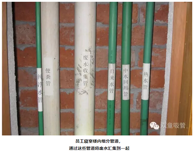 所謂的廢水收集中水回用系統(tǒng)其實(shí)就是:在員工生活區(qū)的衛(wèi)生間內(nèi)鋪設(shè)管道,將員工洗臉、洗澡、洗衣服所產(chǎn)生的廢水通過管道匯集,用細(xì)沙、細(xì)木炭、石英砂、活性炭等進(jìn)行隔離過濾和技術(shù)處理,處理過后的水會(huì)流入專門的中水儲(chǔ)存池中。