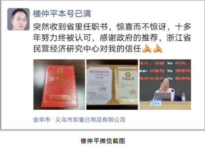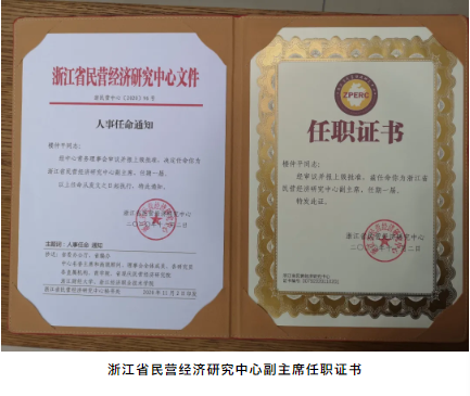 好消息!近日,“雙童”樓仲平被浙江省民營經(jīng)濟研究中心聘請為副主席,以后將對我們浙江省的民營經(jīng)濟發(fā)展做更多工作和貢獻,也能更好代表我們浙江企業(yè)主發(fā)聲提議,爭取推動浙江民營經(jīng)濟更好的發(fā)展!