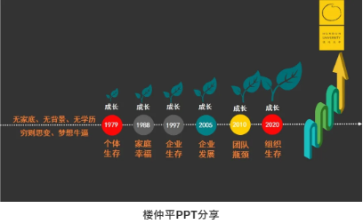 課程一開場,樓仲平就分享了自己的成長歷程。在他的成長歷程中,有三個重要的時間節(jié)點: