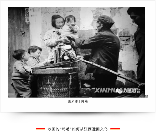 1979年開始,我跟隨著爸爸在江西弋陽開始挑貨郎擔,每個春節(jié)能換回來幾千斤的“雞毛”我們會把換回來的“雞毛”暫存在老表家里結(jié)束后再用板車拉到火車站托運回義烏。