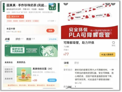除了星巴克、麥當勞、喜茶等幾個月前甚至去年就開始行動的品牌,這陣子剛換上環(huán)保類吸管的各家茶飲店,線上線下免不了一番宣傳和解釋。打開外賣App,不少茶飲店在頁面顯眼處打出了告示:“愛護環(huán)境從一根吸管做起”“可降解吸管,助力環(huán)保”,還有溫馨提醒:“紙吸管長期浸泡硬度易下降,請盡快飲用”“小可愛們插吸管時需稍用力,且保護好自己的手哦”“我們會盡快升級技術(shù)和提升飲用體驗”……