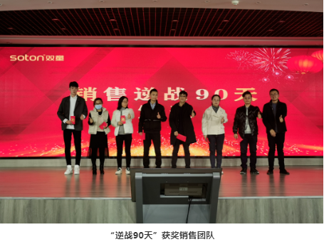 緊接著,“雙童”總經(jīng)理李二橋?yàn)椤澳鎽?zhàn)90天”獲獎(jiǎng)銷售團(tuán)隊(duì)進(jìn)行頒獎(jiǎng)。這些優(yōu)秀團(tuán)隊(duì)在“雙童”疫情危機(jī)之年勇挑重?fù)?dān),甘當(dāng)沖鋒兵,奮戰(zhàn)在銷售一線,為公司開辟出一條全新的道路。其中,餐飲組榮獲了30000多元的獎(jiǎng)金,讓員工們羨慕不已!