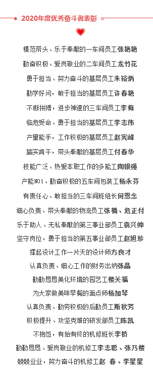 不平凡的2020年,從一開始的疫情突發(fā),打亂了所有的工作計(jì)劃與安排,”雙童“從年前的開工難招工難,再到后來(lái)的銷售難生產(chǎn)難,真可謂是關(guān)關(guān)難過(guò)關(guān)關(guān)過(guò),正是來(lái)自五湖四海的”雙童人“辛勤奮斗,才能讓”雙童“在這個(gè)特殊的時(shí)代繼續(xù)乘風(fēng)破浪,創(chuàng)造更多的輝煌!