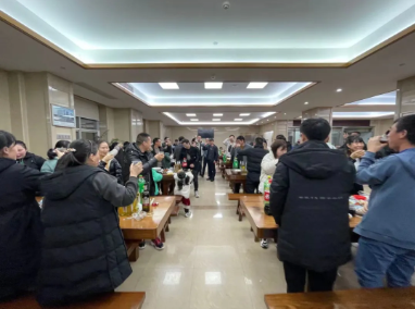 今年的除夕年夜飯,真的不一樣!“雙童”員工餐廳里席開近20桌,每桌都坐的滿滿當當的,一起參與這場盛宴!