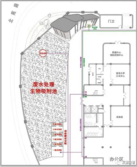 在這個(gè)過程中,員工日常生活中所產(chǎn)生的廢水過濾后,會(huì)流向生物吸附過濾池中,通過過濾池上栽種的樹木根須對水中的物質(zhì)、養(yǎng)分進(jìn)行再次吸附處理,這不僅能再次過濾處理廢水,同時(shí)也能讓樹木生長的越來越好。