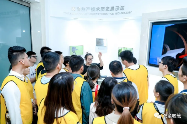 用餐后,同學(xué)們休息片刻便開始了“雙童”游學(xué)之旅。從全球唯一的中國吸管博物館、企業(yè)文化墻、創(chuàng)業(yè)共享平臺(tái)、行政辦公區(qū)、節(jié)能降耗系統(tǒng)、無塵車間到五千平米的空中生態(tài)園,一個(gè)多小時(shí)的游學(xué)之旅帶領(lǐng)大家深度感受了“雙童”的企業(yè)文化。