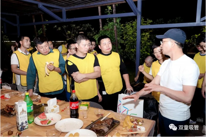 夜幕降臨,課程收尾后,大家來到“雙童”空中生態(tài)園的燒烤平臺(tái),開始了期待已久的烤全羊PARTY。伴隨著生態(tài)園里陣陣花香,大家邊吃邊聊,相處甚是融洽!