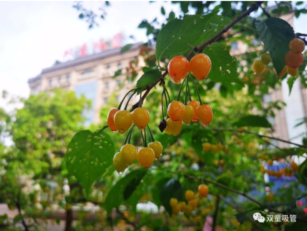 四月,最初成熟的就是櫻桃了,由青轉黃,由黃轉橙,最后變成紅色,一團團、一簇簇如紅寶石一般掛在枝頭,酸甜誘人!