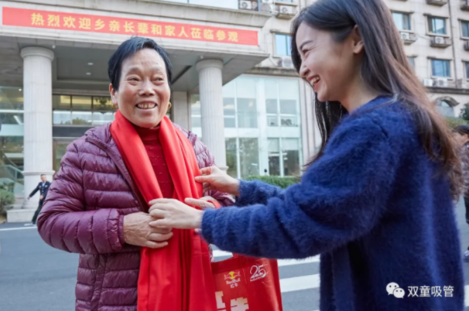 本次活動經(jīng)過前期精心的準備,安排了獨特的參觀線路,也設(shè)置了多種溫暖的活動環(huán)節(jié)。10月29日,在閑適的午后陽光拂照下,“雙童”迎來了接送家人們的大巴車。樓仲平和“雙童人”一同恭候人們的光臨,并為大家獻上紅色圍巾,以表心意。