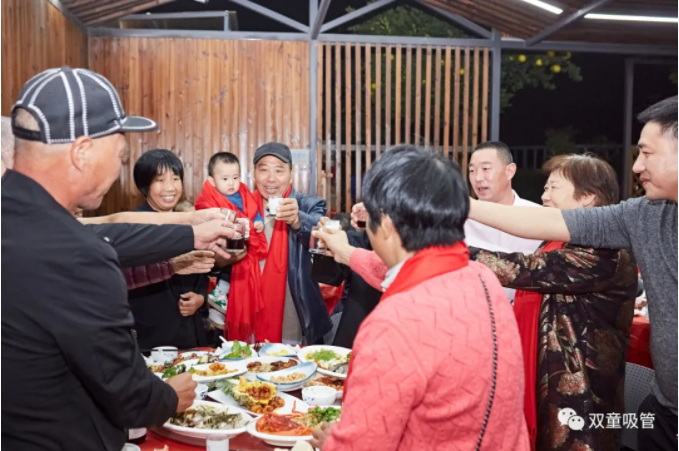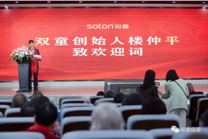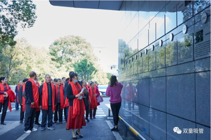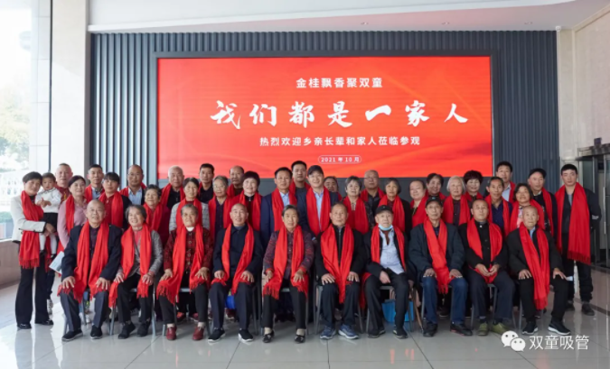 在桂花飄香的金秋時節(jié),樓仲平邀請本家的長輩和家人參觀從自己土生土長的寺后盛村成長起來的“雙童”。本次活動共200多人受邀參觀,先后兩批來到“雙童”,深入了解“一根吸管”的奧秘。同時,也借此機會,讓家人長輩齊聚一堂,凝聚血脈的連接,共話家人親與情 !