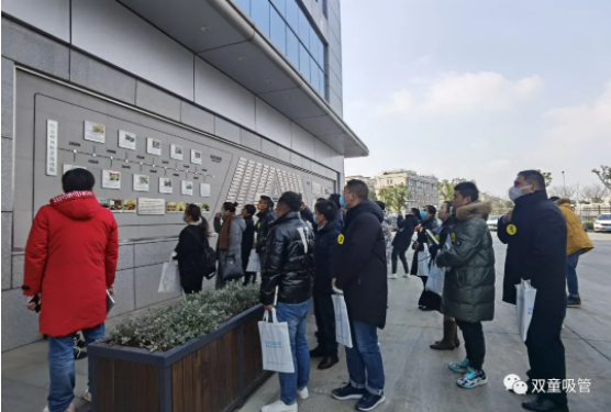 來(lái)參觀的客人,在“雙童”文化墻前駐足