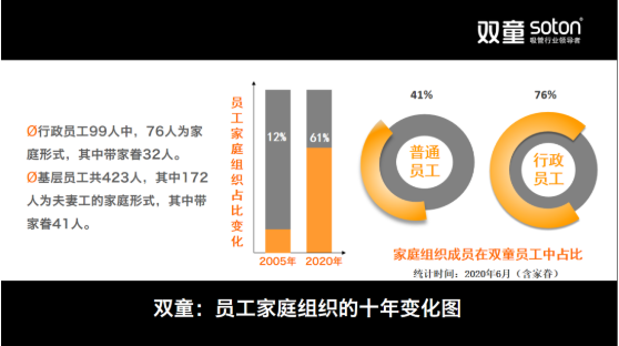 為了能讓員工全身心投入到工作當中,在工作之余不再擔憂家庭生活。“雙童”鼓勵價值型員工將配偶、老人和小孩接到公司就住,最大程度上解決價值型員工的后顧之憂。因此,2004年9月開始,“雙童”就明確把中國傳統(tǒng)“家文化”作為員工管理的著力點:
