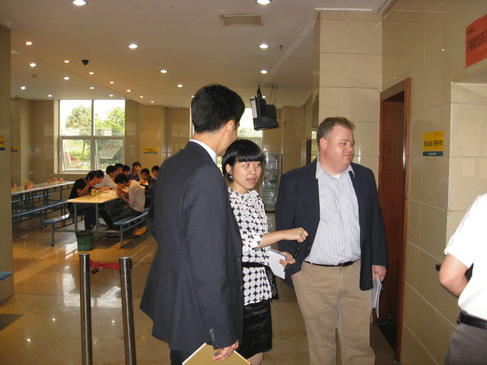 上圖:美國(guó)駐上海總領(lǐng)事館領(lǐng)事參觀考察公司職工餐廳