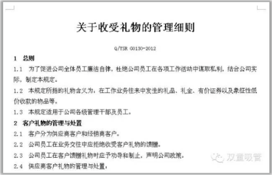 《關于收受禮物的管理細則》部分內(nèi)容
