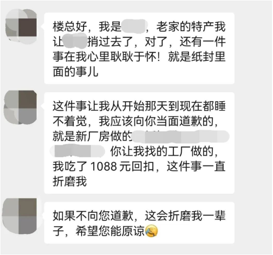 樓仲平在知悉了事情的來龍去脈后,非但沒有不快,反而當即對這位前員工的人品表示了認可,并且大方原諒。在樓仲平的幫助下,這位前員工終于解開了困擾自己已久的心結,與自己達成和解。
