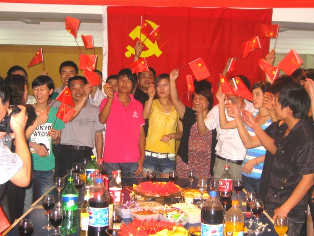 佳肴擺滿桌,美酒斟滿杯,當(dāng)大家一起高舉酒杯,大聲祝福我黨90周年生日快樂的時候,晚會的氣氛到達(dá)了高潮,參加紅色生日Party的員工們都揮舞著紅色的小黨旗,共同祝愿我們的黨、我們的祖國蒸蒸日上,更加富強!
