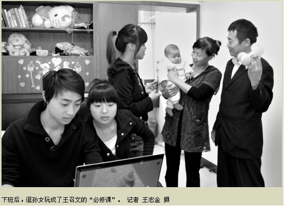 房間里,一家人都在。兒子和女兒在看電腦,妻子和兒媳在逗芯芯玩。王召文上前“搶”過(guò)孫女,親親她的臉頰,喚著她的小名,逗得小家伙咧開(kāi)嘴直笑。