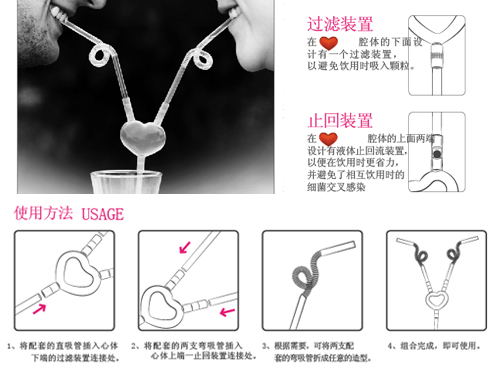 由雙童吸管全新獨(dú)創(chuàng)設(shè)計(jì)的全球?qū)@a(chǎn)品“愛(ài)心吸管”: