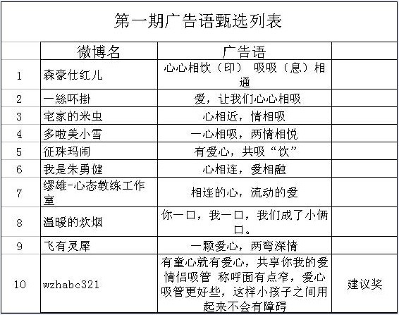 被征集的廣告語(yǔ)將用于我們 “愛(ài)心吸管”產(chǎn)品所有包裝正面的廣告詞。
