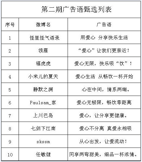 第二期獲獎(jiǎng)名單和廣告語(yǔ):