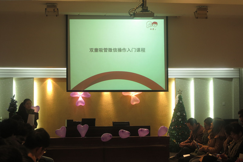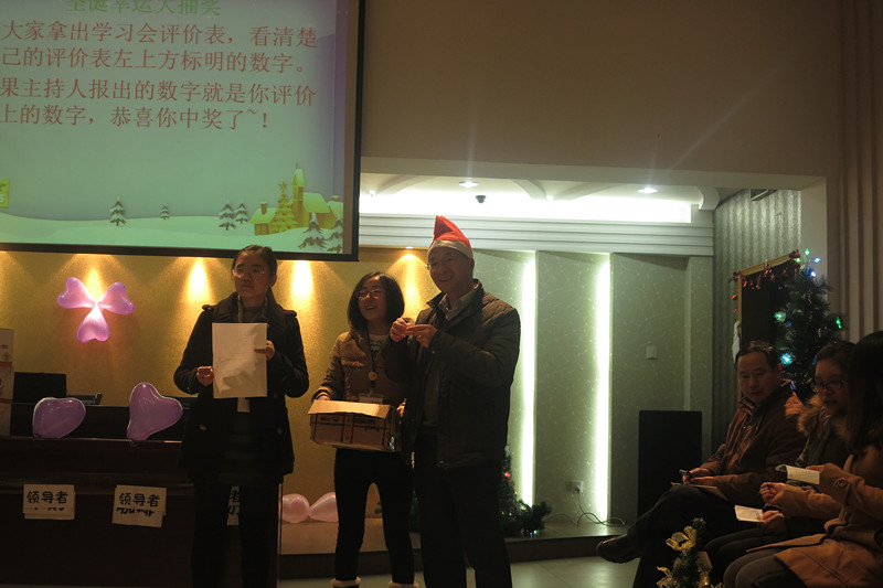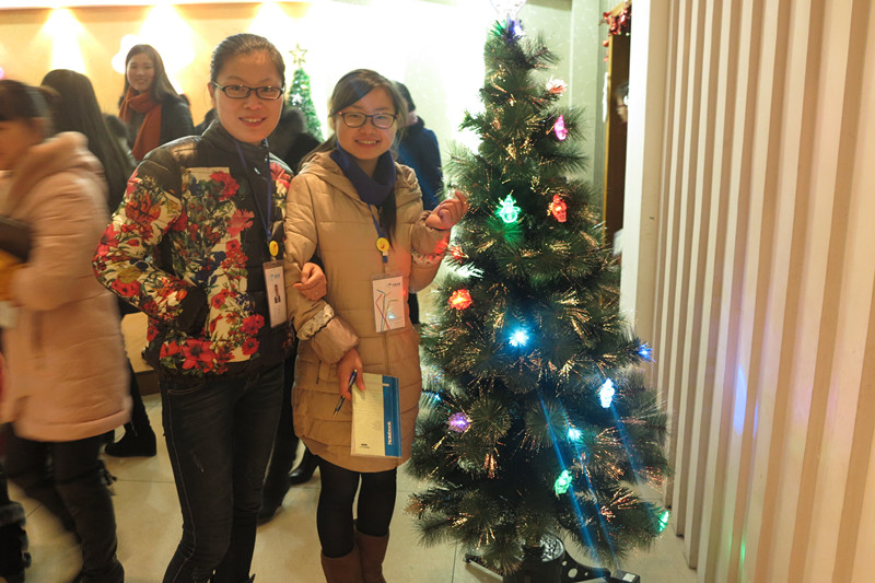 12月23日,每周一次的雙童學(xué)習(xí)會(huì)繼續(xù)在雙童九樓活動(dòng)室舉行。本次的學(xué)習(xí)會(huì)主題是圣誕節(jié),主持人是文宣部的三位“不靠譜”的美女主持人??纯次覀兊膶W(xué)習(xí)會(huì)現(xiàn)場,到處都充滿了圣誕氣息,除了供應(yīng)商友情贊助的十幾顆大大小小的圣誕樹之外,更有幾位“不靠譜”文宣部美女純手工制作的雙童版圣誕樹,現(xiàn)場布置的很活潑、很溫馨有木有!