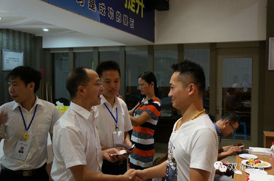 慶典開始前的會場,樓總再次與參與慶典的客戶,一一握手致敬,并互相交換名片。參與慶典的客戶有來自廣州的,來自武漢的,來自昆明的,來自湖南的、來自湖北的、來自天山腳下烏魯木齊的……感謝每一位來自天南地北的珍貴嘉賓大熱天放棄工作來為雙童鼓掌吶喊。20年風(fēng)雨歷程,感謝你一路相伴,感謝每一位關(guān)注我們的朋友。