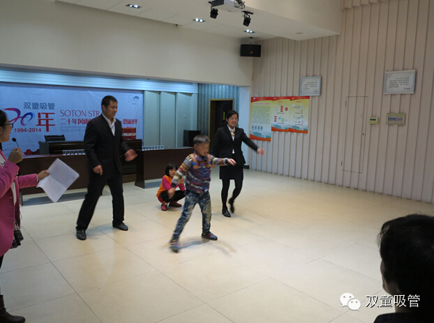首先,這期生日會(huì)的第一個(gè)不同之處,就是參與生日會(huì)的人員注入了新鮮的血液!我們請(qǐng)來(lái)了第三代雙童人——隨父母居住在雙童的孩子們,為壽星們跳了一段熱情洋溢的舞蹈——《小蘋果》!看著孩子們駕輕就熟的表演,吸管妞也鬼馬地讓他們的“生產(chǎn)商”廠長(zhǎng)李秀前和廠長(zhǎng)夫人上臺(tái),讓孩子們教兩位如何跳“小蘋果”!一番折騰下來(lái),不僅讓在座的各位壽星笑得前仰后合,更讓跳的手腳不知道怎么放的廠長(zhǎng)李秀前感嘆道:長(zhǎng)江后浪推前浪,前浪死在沙灘上??!