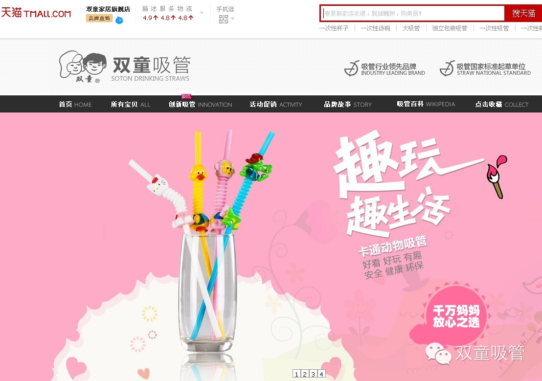 “企業(yè)要走在市場(chǎng)前面,才有可能成為行業(yè)領(lǐng)先者?!?/span>抱著這樣的信念,樓仲平對(duì)新鮮事物特別敏感,而這也讓他成為了第一批入駐阿里巴巴的供應(yīng)商。“2004年我就已經(jīng)結(jié)識(shí)馬云了,成為第一批網(wǎng)商。此后隨著淘寶、天貓的上線,雙童吸管也是緊跟趨勢(shì),上線了淘寶店和旗艦店?!?/p> 如今,在雙童天貓旗艦店網(wǎng)頁(yè)上展示著愛心、動(dòng)物、雙人吸管、兒童吸管等各種造型、不同功能的吸管,銷量也在節(jié)節(jié)攀升。 來源: 浙江在線-浙商網(wǎng) 編輯: 徐光