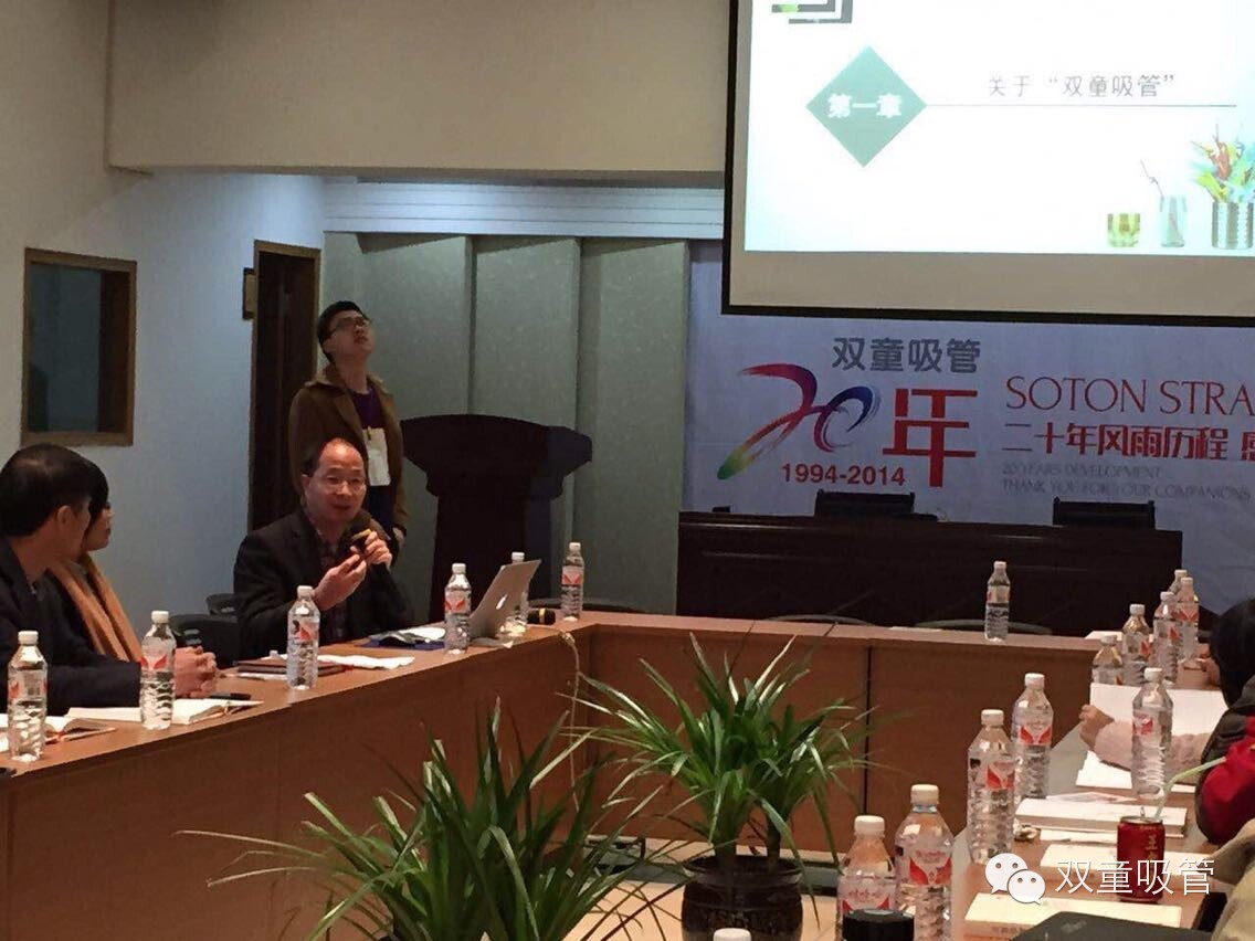 下午,在享用過簡單的午餐后,大家在九樓閣里開了一個小型的“學(xué)習(xí)會”,當(dāng)家人@樓仲平 向他們?nèi)娼榻B講述了關(guān)于雙童吸管的種種方面,也是贏得了在座的各位領(lǐng)導(dǎo)們的一致掌聲。