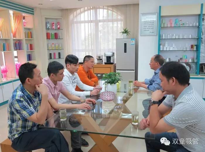 5月13日,深圳金富源表業(yè)公司的董事長劉仕威帶著4位高層領(lǐng)導特地打著“飛的”來到雙童拜訪交流。