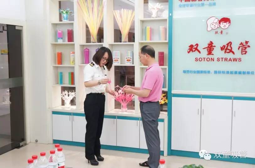首先第一站就是我們的樣品房。樓總詳細(xì)的向客人介紹了雙童近年來產(chǎn)品轉(zhuǎn)型升級的一些代表產(chǎn)品,如愛心吸管、哈哈吸管等。在看到賦予了更多使用功能與感情色彩的創(chuàng)新吸管產(chǎn)品之后,客人們也都是紛紛稱贊,驚嘆之心溢于言表!