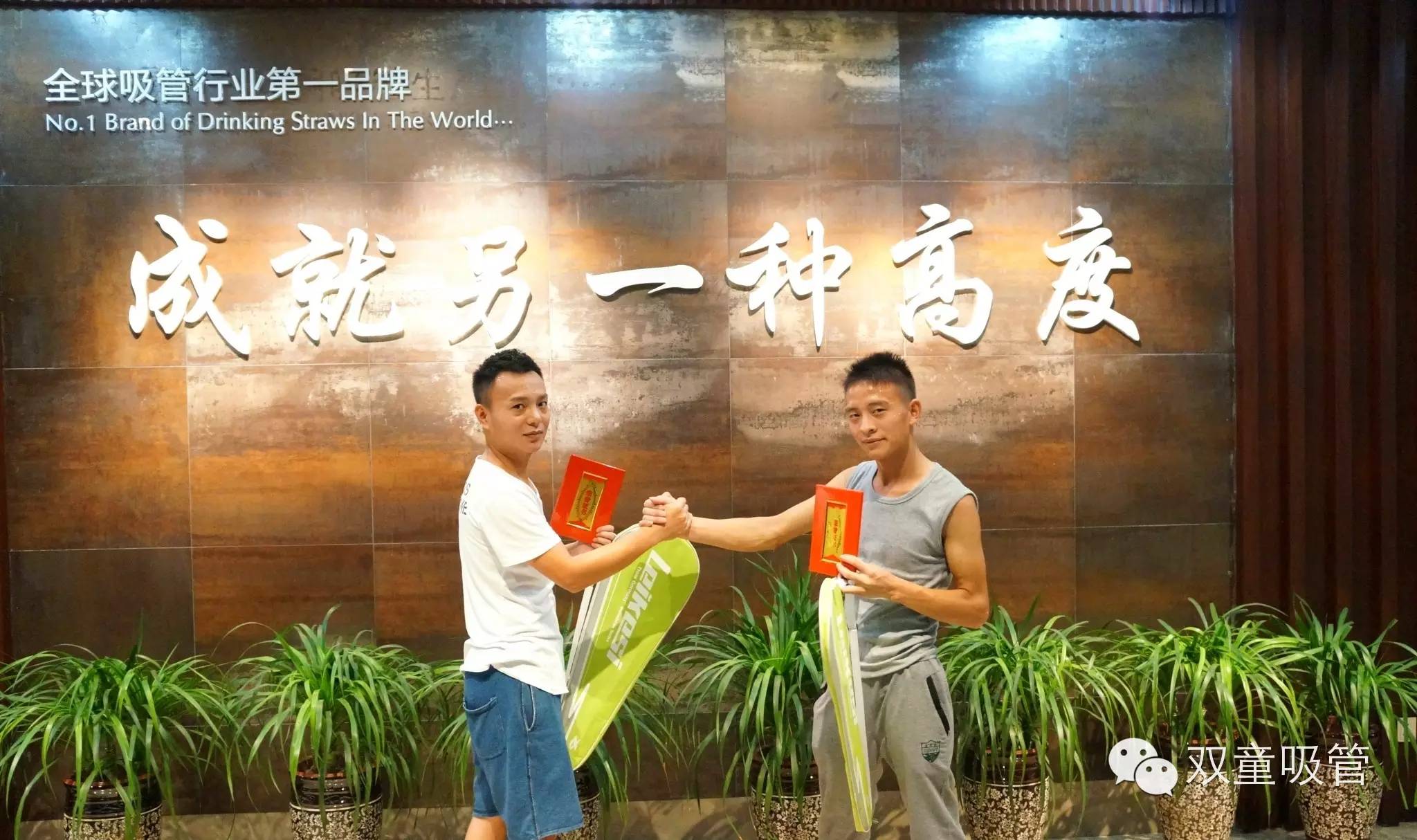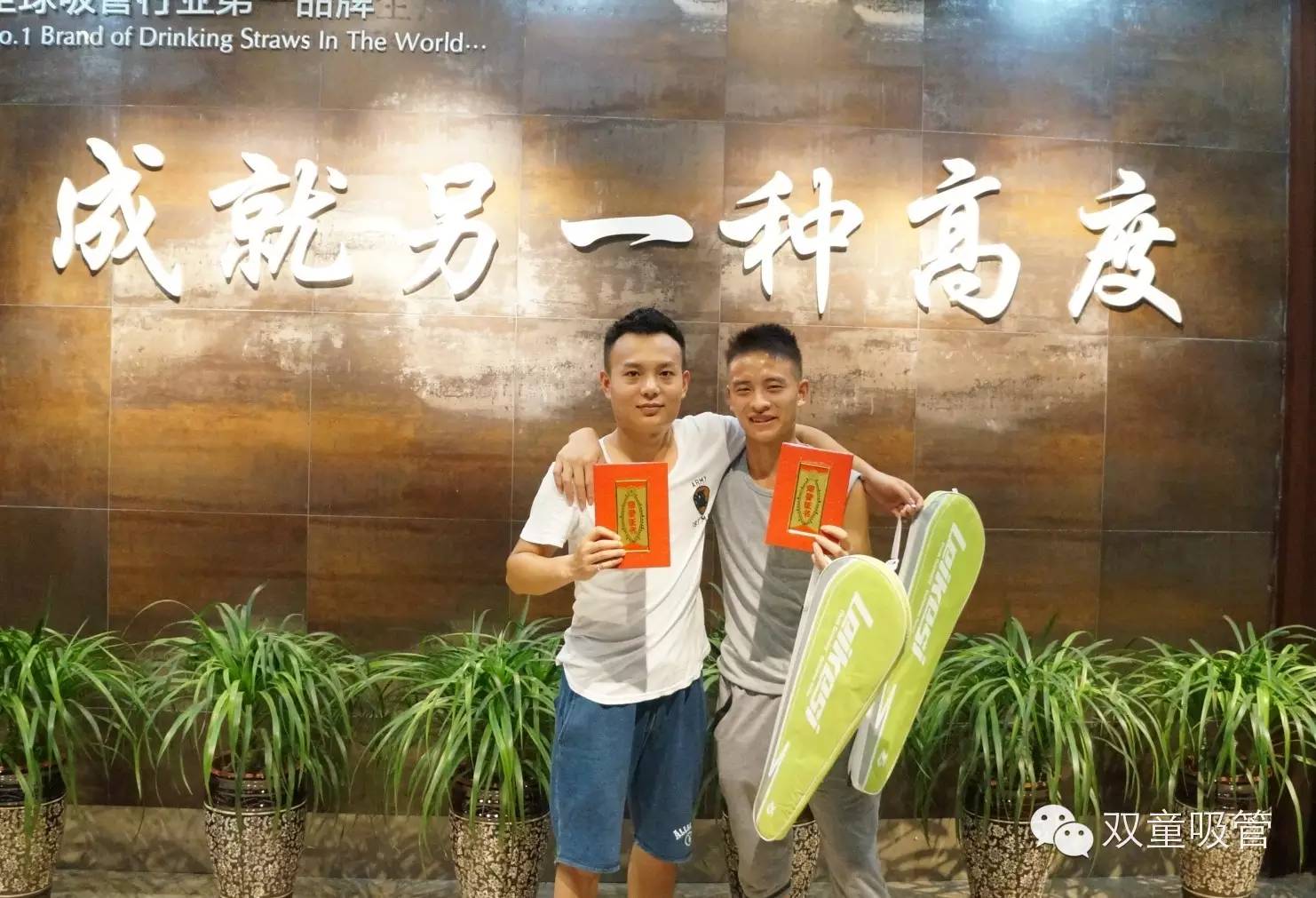 沒有專業(yè)場地,但我們有吸管;沒有專業(yè)場地,但我們有吸管。我們特地采用車間的長吸管廢料粘成彩色的場地邊線,用吸管廢料和膠帶粘成吸管球網(wǎng)。就這樣,我們因地制宜,就地取材,在行政樓前創(chuàng)造了一個羽毛球的吸管場地,社員們都覺得咱們確實是雙童的人吶,如此熱愛吸管。