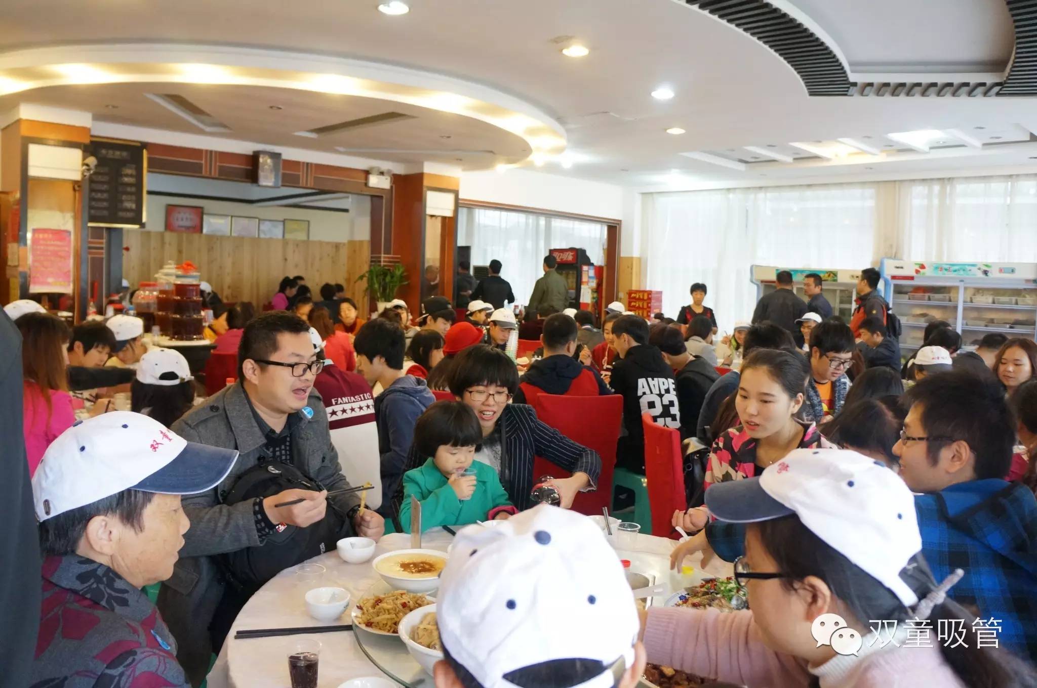 雖然時間還早,由于下午還要去往神仙居拜訪神仙,所以我們就趕緊去填肚子啦!于是,雙童又一次承包大酒店,這景象,熱鬧的呀?。?!