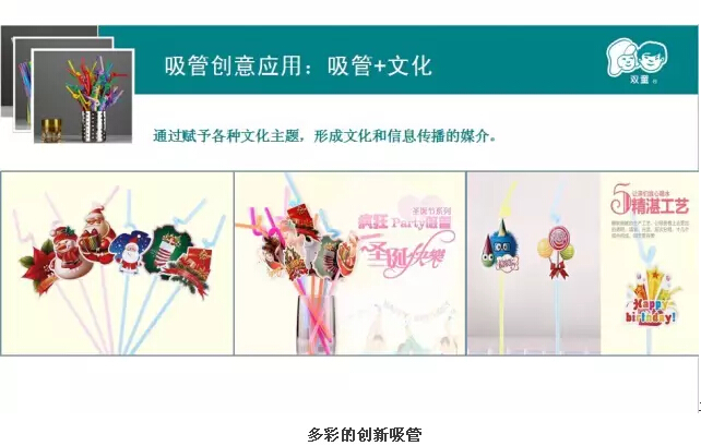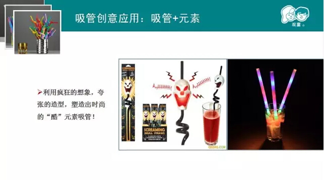 其實基于生活中的創(chuàng)新吸管無處不在,一根普通的吸管加上文化、情感、功能、娛樂、體驗等等不同的特質就能變身為全新的吸管。那么吸管有哪些創(chuàng)新應用呢,妞就放幾張照片讓大家大飽眼福吧!