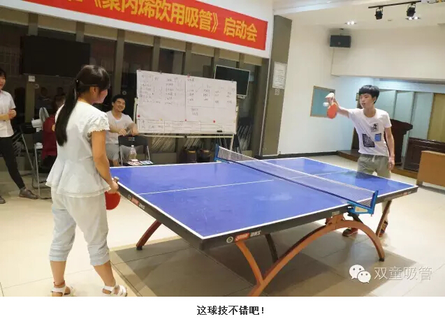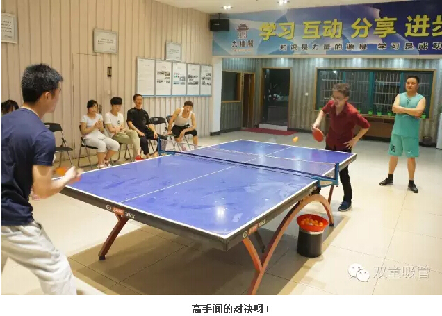 5月27日晚七點(diǎn)半,一場精彩的乒乓球賽在雙童九樓閣舉行!為了不受外面風(fēng)力的阻擾,男同胞們就把球桌搬到了室內(nèi),一下就占據(jù)了九樓閣的的正中心,成為全場的焦點(diǎn)。這不,還沒開始呢!乒乓球迷們就忍不住先練練手啦!下面吸管妞就帶大家看看現(xiàn)場的盛況吧!