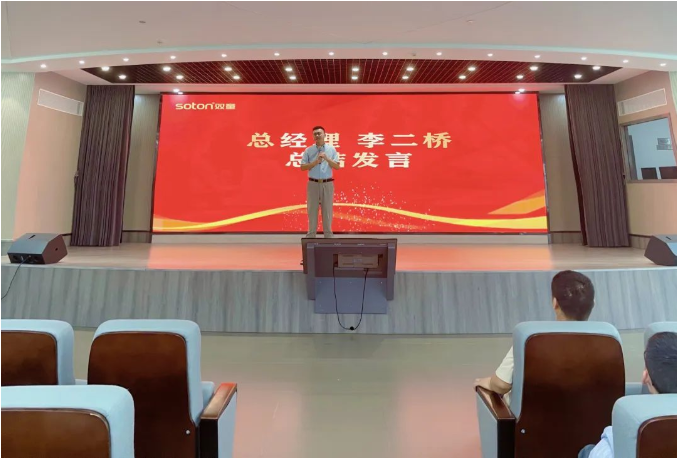 在大會最后,“雙童”總經(jīng)理李二橋?qū)Φ诙径裙ぷ髯骺偨Y(jié)發(fā)言。在發(fā)言中,他向在場的每一位員工表達(dá)了承諾2022年上半年的國內(nèi)經(jīng)濟(jì)發(fā)展形勢不大樂觀,但即便今年的經(jīng)濟(jì)大環(huán)境再不好,雙童也會盡全力保證員工工資漲幅只會為正、絕不減薪!