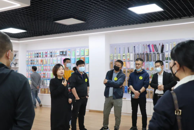 在第三創(chuàng)業(yè)體樣品間,孟竹燕與雙童商學院學員們介紹