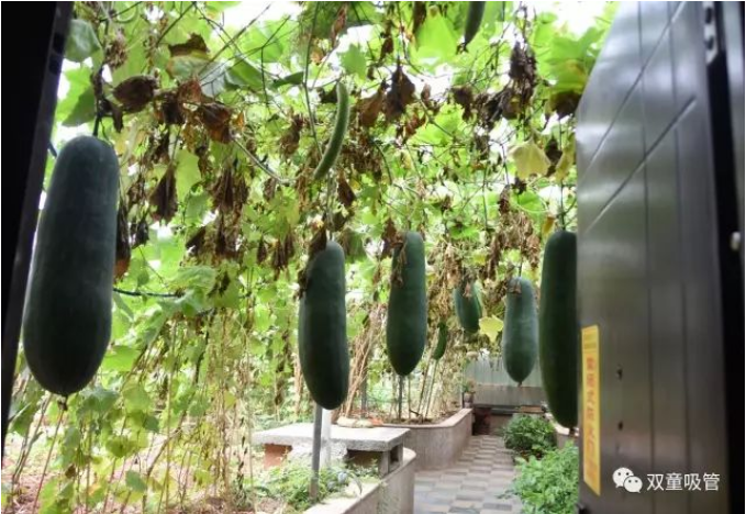 除了冬瓜之外,菜園里的南瓜和絲瓜也長勢大好!成雙結(jié)對的爬滿藤架,掛上沉甸甸的果實(shí),饞得吸管妞直流口水