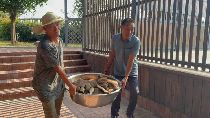 這回聚餐餐桌上的主角是——兩只牛頭!這可足足有上百斤,聽起來是不是很過癮呢!