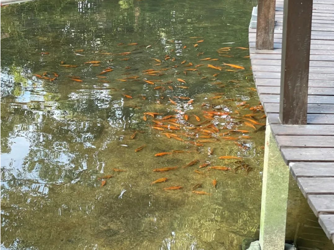 這新的湖水一更換,才發(fā)現(xiàn)原來湖里多出了這么多小魚!瞧,上百條手掌長的小錦鯉正在湖里嬉戲,看來這塊地方確實是風水寶地,原先的魚兒們都過得很舒適呢!