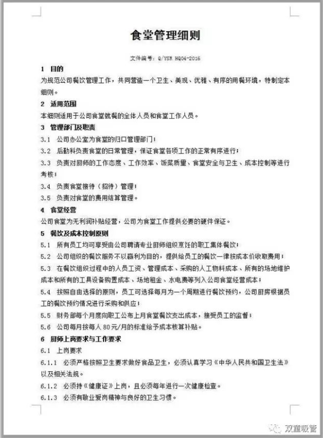 “雙童”食堂管理細(xì)則,涉及到餐飲管理的各個(gè)方面
