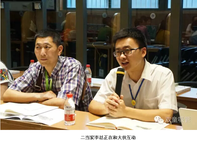 精彩的互動(dòng)交流之后,時(shí)間也已經(jīng)所剩不多了。帶隊(duì)老師歐陽(yáng)鵬老師接過話筒,對(duì)當(dāng)家人樓總和二當(dāng)家李總的無(wú)私分享表示由衷的感謝,他說(shuō),他已經(jīng)是第4次來(lái)“雙童”學(xué)習(xí)了,也從中學(xué)習(xí)到了非常多,他號(hào)召各位在座的企業(yè)主們都能夠恪守商道,守住“初心”,向“雙童”學(xué)習(xí)。