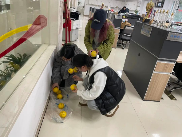 雙童:廠區(qū)的幾千斤柚子成熟啦!香香的、甜甜的、黃燦燦的一片片掛滿枝頭!