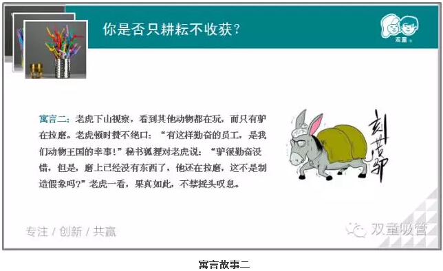 不知不覺,已經(jīng)分享到了最后一個故事。而最后一個故事更是引起了大家的深思。為什么如此勤勞的驢卻沒有評上勞模呢?你是保值品還是增值品?見此,童鞋們的學習熱情更加高漲啦!